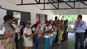 Durante una emotiva ceremonia celebrada en el resguardo "Nueva Esperanza" del municipio de Natagaima, 180 miembros de las comunidades indígenas del Tolima, recibieron de manos del Director General de Cortolima, Jorge Enrique Cardoso Rodríguez, el certificado que los acredita como Líderes Ambientales en el proceso de adaptación y mitigación de los efectos del cambio climático.