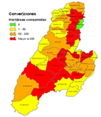 Aumento de la Susceptibilidad de la vegetación a la ocurrencia de incendios forestales.- Los Municipios con áreas de mayor susceptibilidad a la ocurrencia de incendios forestales son: Alpujarra, Ambalema, Ataco, Carmen de Apicalá, Chaparral, Coello, Coyaima, Cunday, Dolores, Guamo, Icononzo, Melgar, Natagaima, Ortega, Prado, Purificación, Rioblanco, San Luis, Saldaña, Suárez, Valle de San Juan y Villarrica (SAGER 2015).