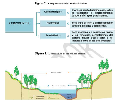 Según el Ministerio de Ambiente y Desarrollo Sostenible define una ronda hídrica o hidráulica como un área de especial importancia ecológica de dominio público inalienable, imprescriptible e inembargables que juegan un papel fundamental desde el punto de vista ambiental. Según La Guía para el Acotamiento de las Rondas hídricas de los Cuerpos Agua de acuerdo a lo establecido en el artículo 206 de la ley 1450 de 2011 también se detalla como: "zonas o franjas de terreno aledañas a los cuerpos de agua que tienen como fin permitir el normal funcionamiento de las dinámicas hidrológicas, geomorfológicas y ecosistémicas propias de dichos cuerpos de agua".