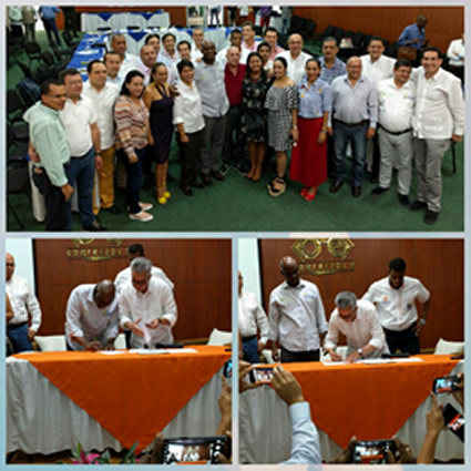 Ministro de Ambiente Luis Gilberto Murillo y el Director de Asocars Ramón Leal Leal firman como testigos la Declaración de las Corporaciones Autónomas Regionales y de Desarrollo Sostenible por la transparencia y la lucha en contra de la corrupción.