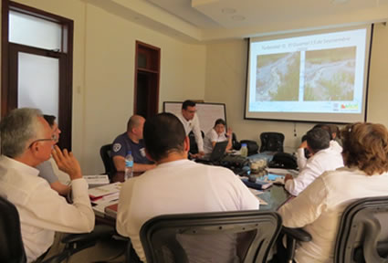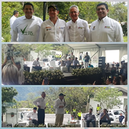 En el Cañón del Combeima, a orillas de la Quebrada Cay el Vicepresidente Germán Vargas Lleras, junto al Alcalde de Ibagué, el Gerente del IBAL y el Gerente de Findeter,