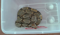 Luego de ser encontrada y rescatada una Boa Constrictor en una de las casetas cercanas al área de la pista de patinaje del Parque Deportivo ubicado en la ciudad de Ibagué, miembros de la Policía Ambiental la trasladaron a las instalaciones de CORTOLIMA con el objetivo de evaluar el estado del animal.