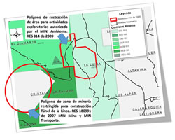 La Agencia Nacional Minera –ANM- y el Instituto Nacional de Vías –INVIAS-, negaron la solicitud que realizó la empresa Anglogold Ashanti Colombia, desde el mes de junio de 2014, para adelantar perforaciones de geotécnia, hidrogeología y condenación de áreas dentro del polígono o área de restricción en donde se construye el túnel de la Línea. Mediante comunicaciones ANM No. 20143330023881 del 13 de junio de 2014, el Vicepresidente de seguimiento, control y seguridad minera de la ANM, Dr. Juan Camilo Granados Riveros, ratificó la condición de “zona de minería restringida”, conforme se estableció en la Resolución 180991 del 3 de julio de 2007, expedida por el Ministerio de Minas y Energía y el Ministerio de Transporte.