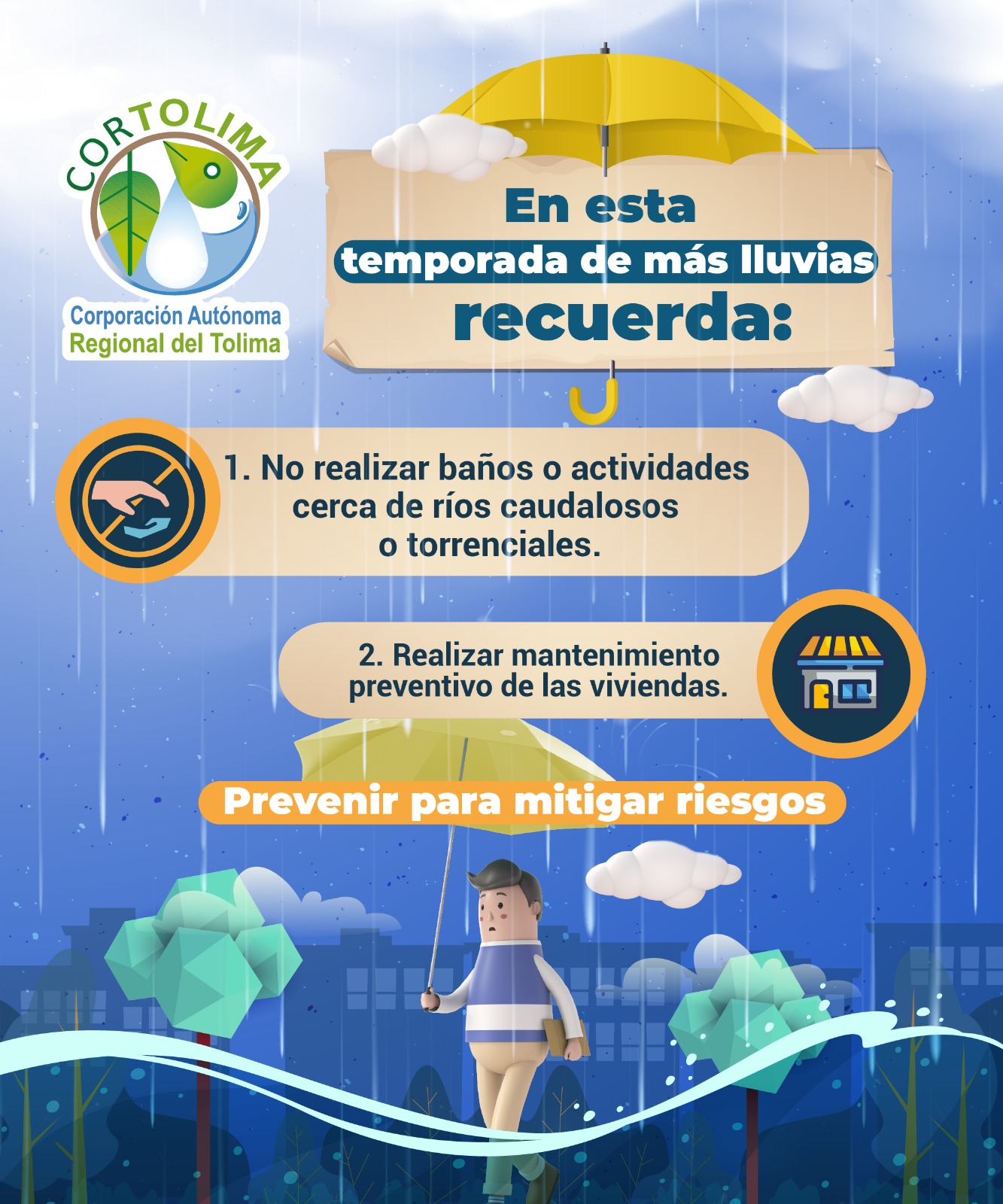 De acuerdo con las proyecciones del IDEAM y la estacionalidad de las lluvias para el país que indican que abril y mayo son meses lluviosos en gran parte del territorio, es altamente probable que se incrementen progresivamente los eventos asociados a tiempo lluvioso. Así mismo, que en el acumulado de eventos de la temporada sobresalgan estos eventos sobre los asociados a condiciones secas o de menos lluvias.