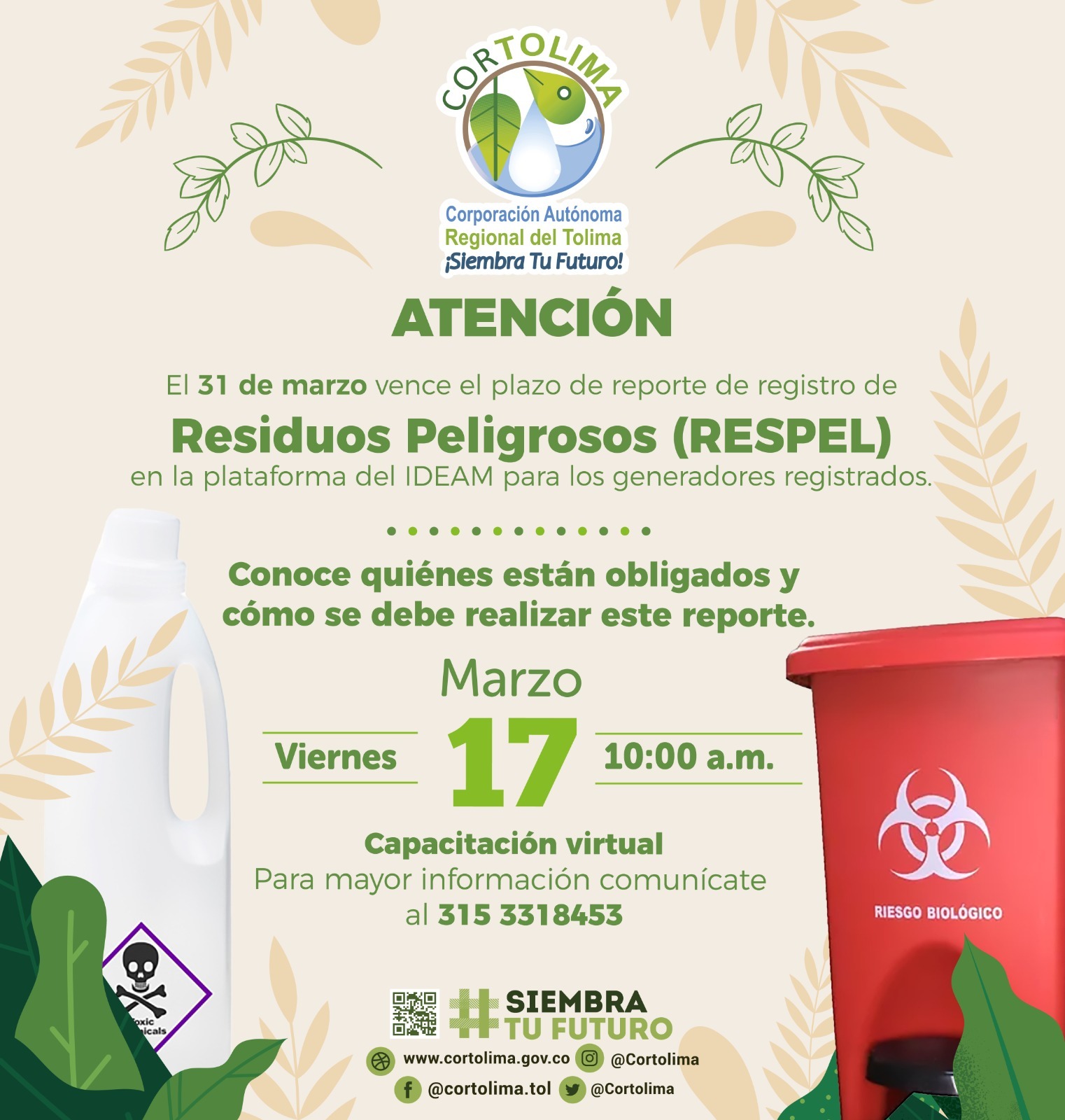 Linea de Rescate Fauna Silvestre: 318 632 2529