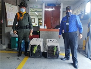 Cortolima junto al Grupo de Carabineros y Guías Caninos de la Policía del Tolima, en su ejercicio de control y vigilancia en el departamento incautaron cinco loros frenteamarillo (Amazona ochrocephala), un loro real (Amazona amazónica), una cotorra cabeciazul (Pionus menstruus), un mono ardilla (Saimiri cassiquiarensis) y un flamenco (Phoenicopterus ruber); de igual forma rescataron un búho currucutu (Megascops choliba) en el departamento.