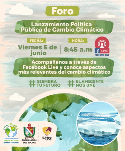 Con invitados nacionales e internacionales, el 5 de junio la Corporación Autónoma Regional del Tolima, Cortolima, celebrará el Día Mundial del Ambiente.