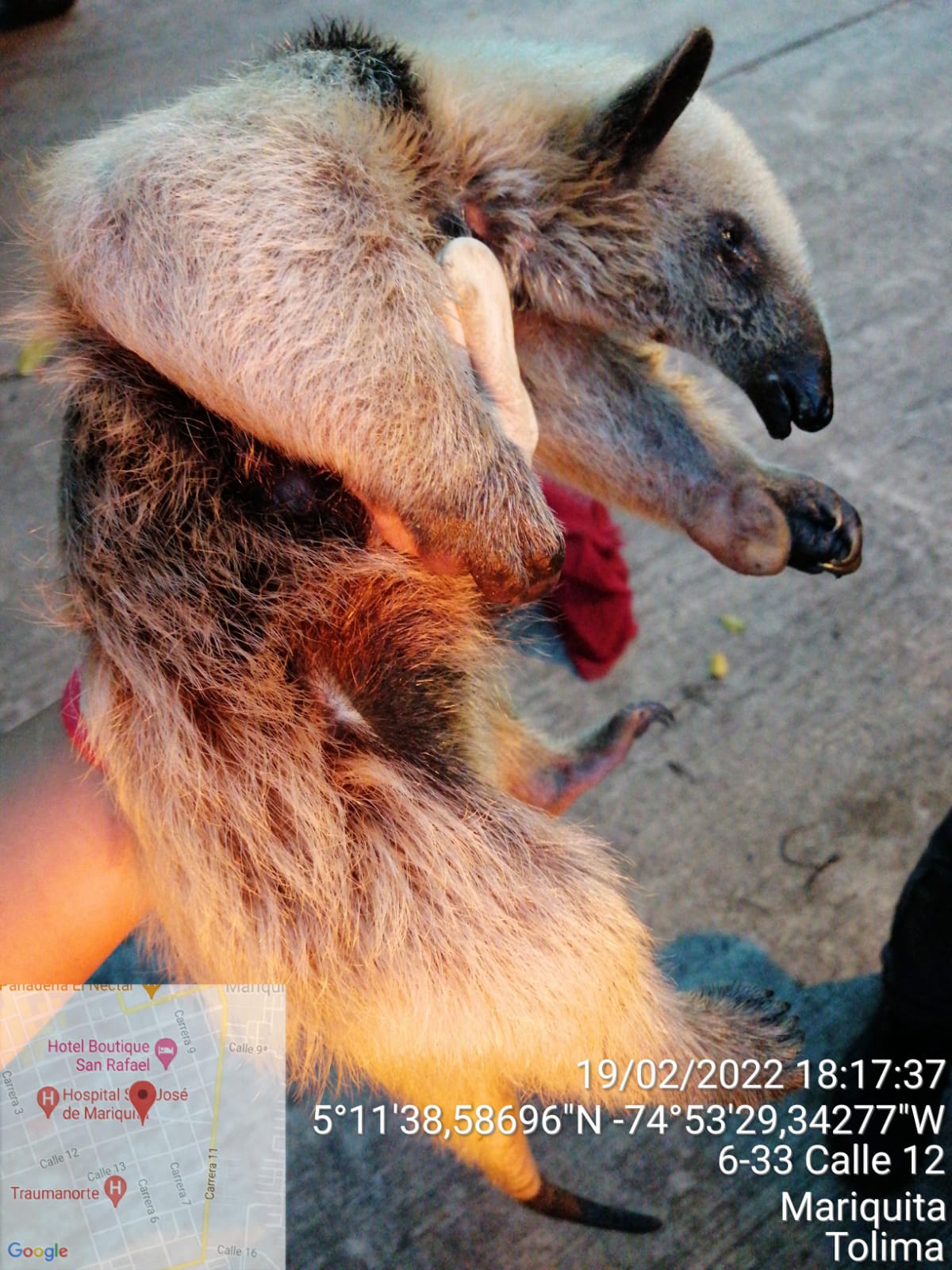 La Corporación Autónoma Regional del Tolima atendió el llamado de un habitante de San Sebastián de Mariquita, quien reportó el hallazgo de una tamandúa mexicana, llamada comúnmente como Oso Hormiguero, en la vía de Mariquita que conduce al municipio de Honda.